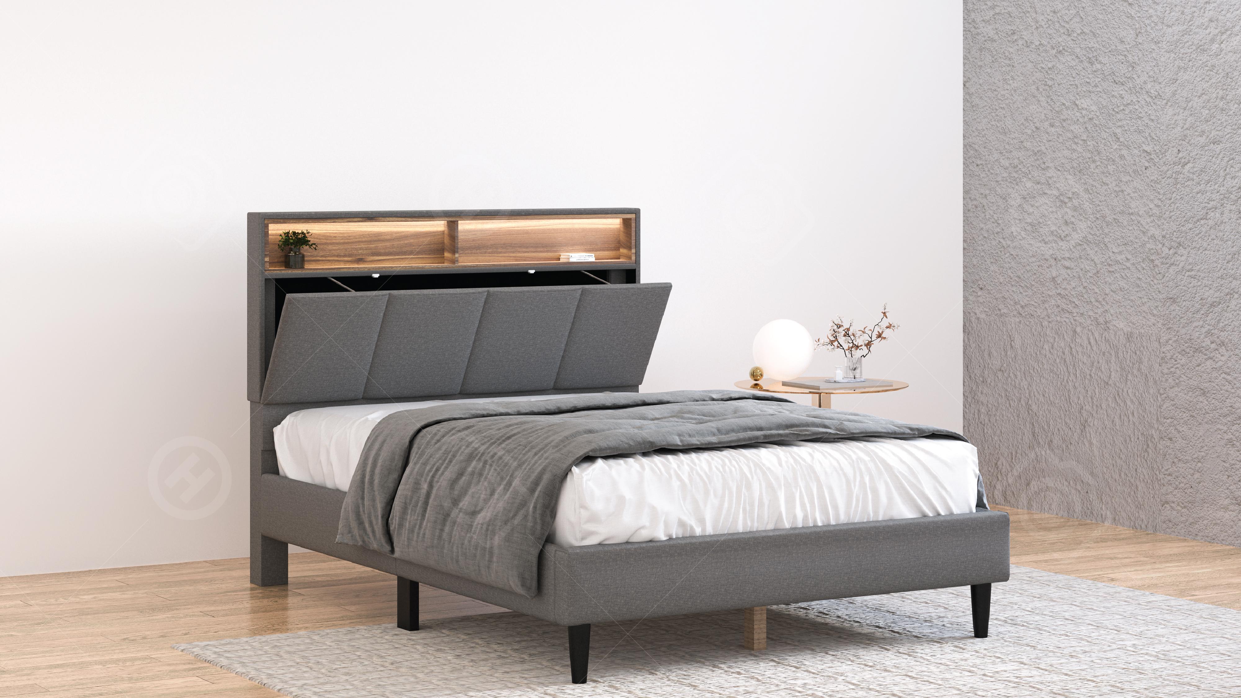 Upholstered Storage Bed with LED Lights